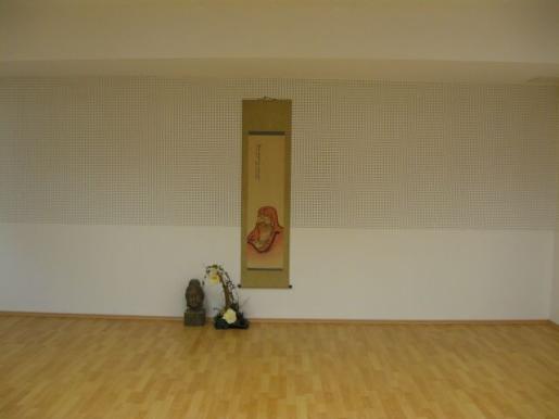 An der Vorderseite, dem Shomen des Budokan Staudt, stand das Bildnis von Boddhidarma (Daruma, Da Mo) für die chinesischen Wurzeln der Kampfkunst, die Buddha Statue für den Geist und das Blumengesteck für die Natur.