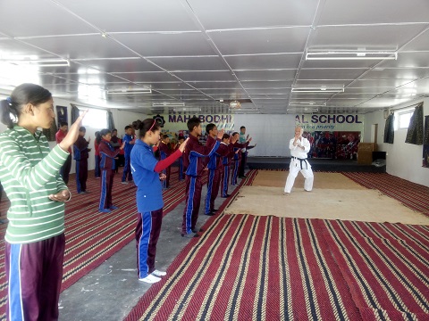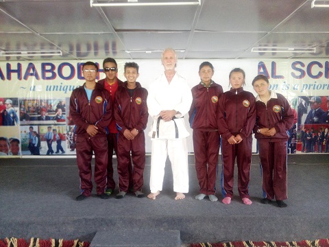 Im Januar 2013 besuchte Bhante Sanghasena unser Dojo und fragte hierbei Sensei H.-Peter Staudt spontan, ob dieser bereit sei, im MIMC Karate zu lehren. Sensei H.-Peter Staudt sagte ebenso spontan zu und unterrichtete bereits im Juli 2013 zusammen mit Michaela Schmidt dort an 11 aufeinanderfolgenden Tagen über 470 Schüler, unterteilt in 12 Klassen, im Alter zwischen 6 und 18 Jahren, einschließlich Mönchen und Nonnen sowie einiger Lehrer, jede Person mindestens drei- oder viermal. Drei der dortigen Schüler, Rigzin Cuhskit, Sonam Yangzes and Stanzin Nurbu, nahmen während der gesamten Zeit an dem Unterricht teil, um die Leitung eines regelmäßig stattfindenden Trainings übernehmen zu können.